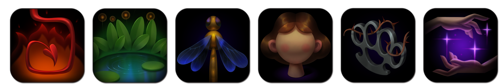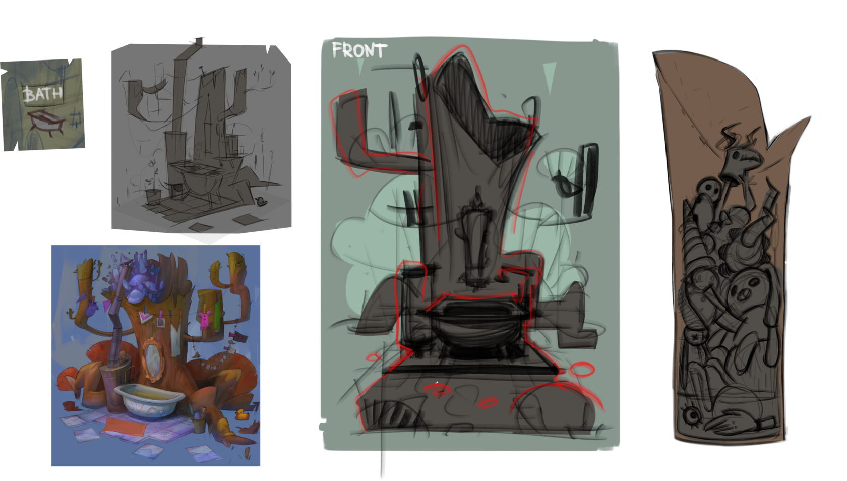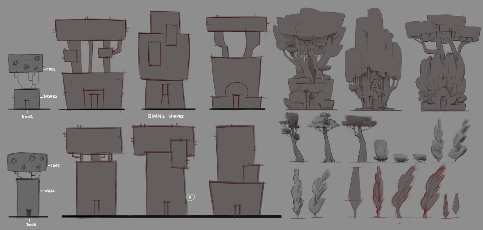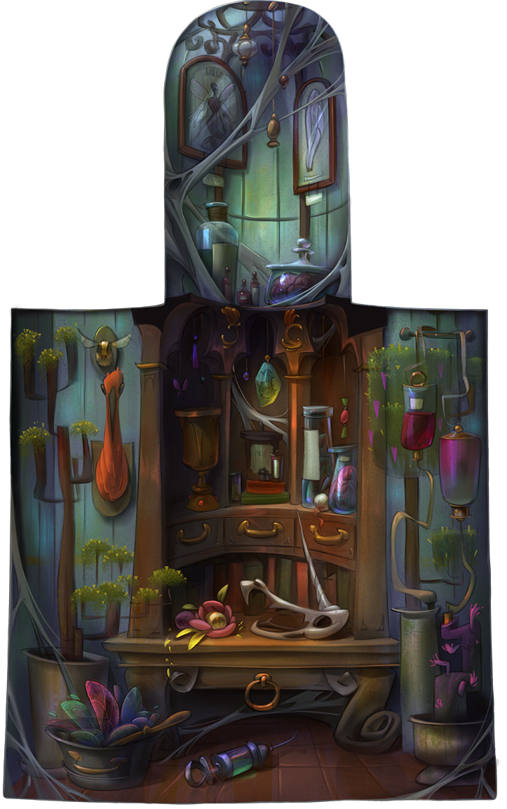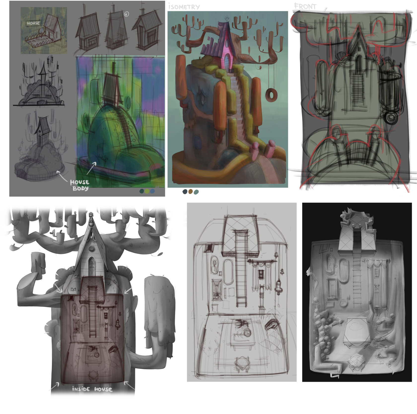 In the first concepts, the map resembled a forest with small patches of locations. In the final version, the map is a labyrinthine garden, and the locations are small statues.